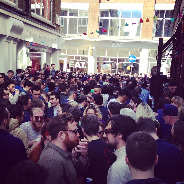 I finally completed the alphabetising of my LPs last week, a task that’s occupied sporadic Sunday mornings for the past 4 months or so. Next up is the 12s and 7s, which will likely be trickier but that’s a concern for another day. Aside from the nerdy organisational kick I get out of this task, it’s also been great fun revisiting and rediscovering some of the more remote corners of my collection. In some instances I have records that I have no memory of and as I got to the ‘W’ section I realised that a big chunk of these were Record Store Day purchases. We released our own RSD releases on First Word in the shape of our Nothing Leaves The House series and I have fond memories of the early years of the event, particularly the street parties outside Sounds Of The Universe (see pics below). In recent years I find myself paying less and less attention as lazy major-label reissues have flooded stores with records no-one asked for. I guess it’s still working for the shops though, and it certainly worked on me judging by the number of records I seemingly grabbed without listening to in FOMO-led sprees every April.